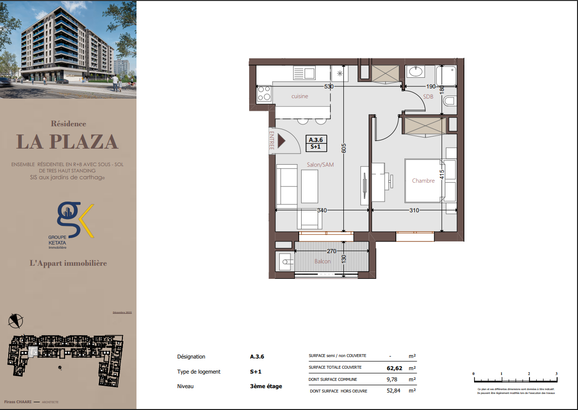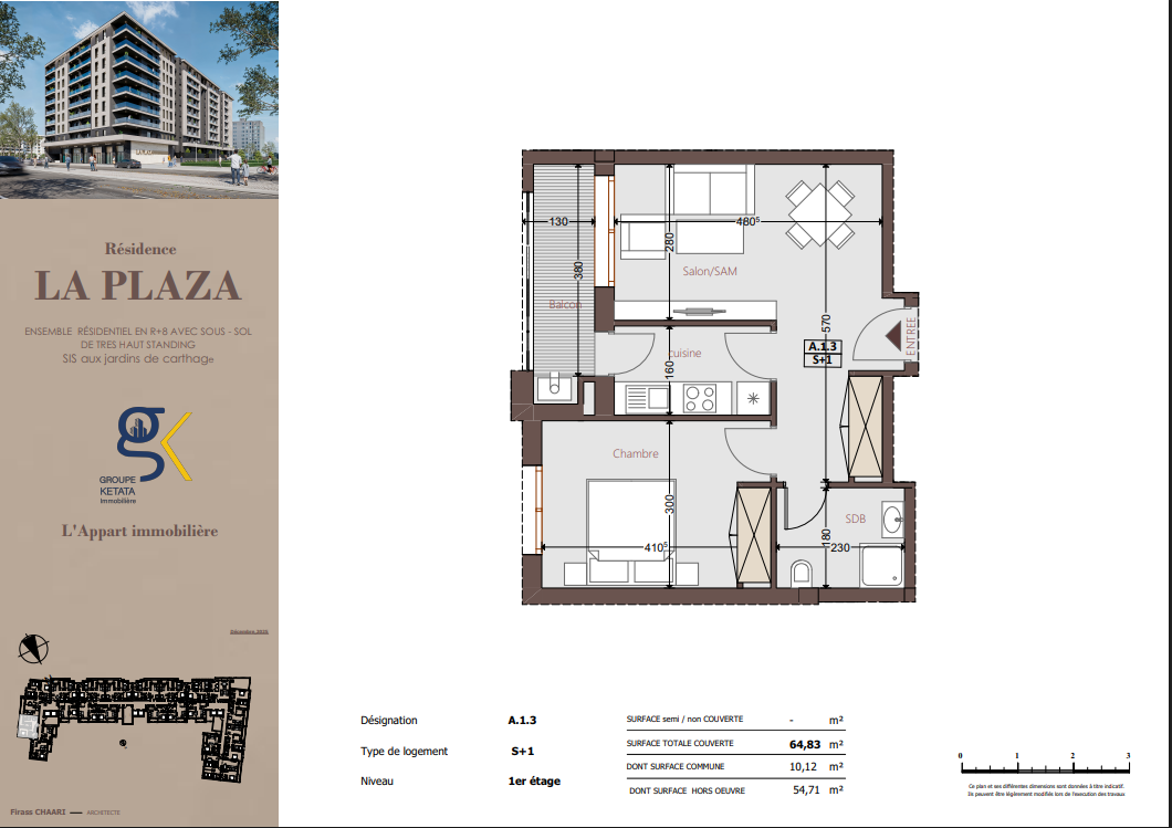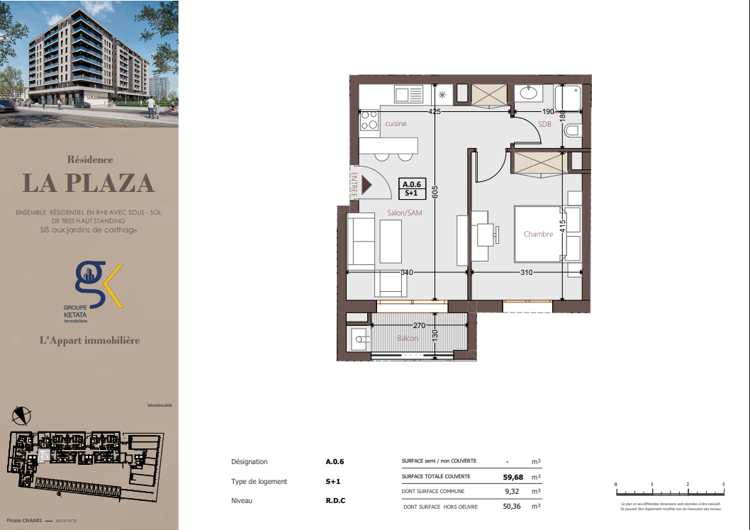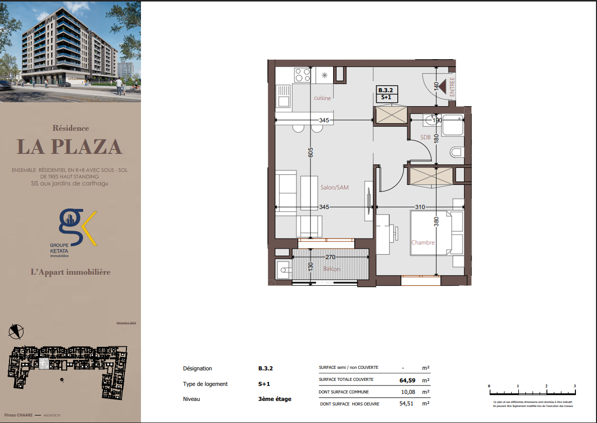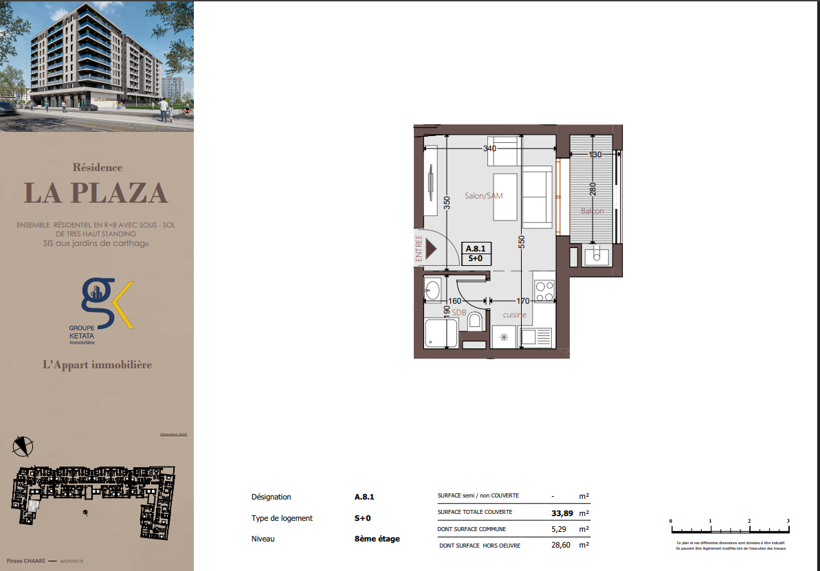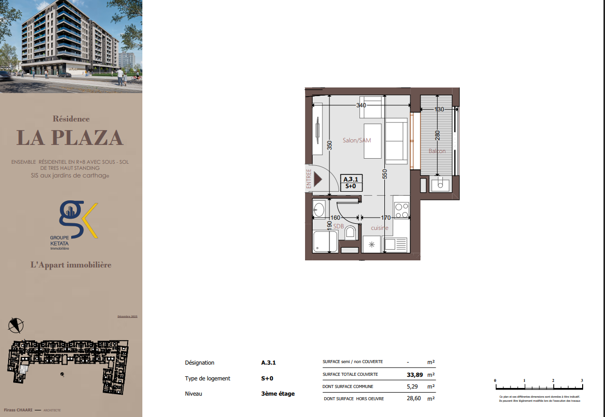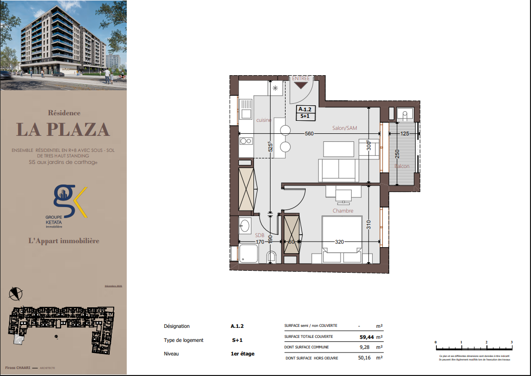 Idéalement située au cœur des Jardins de Carthage, La Plazza incarne une nouvelle vision de la résidence haut standing. Signée par Groupe Ketata Immobilier, elle offre un cadre de vie alliant confort absolu, élégance contemporaine et sérénité, au sein d’un quartier prisé et parfaitement connecté à toutes les commodités essentielles. Son architecture moderne reflète un subtil équilibre entre prestige et design actuel.